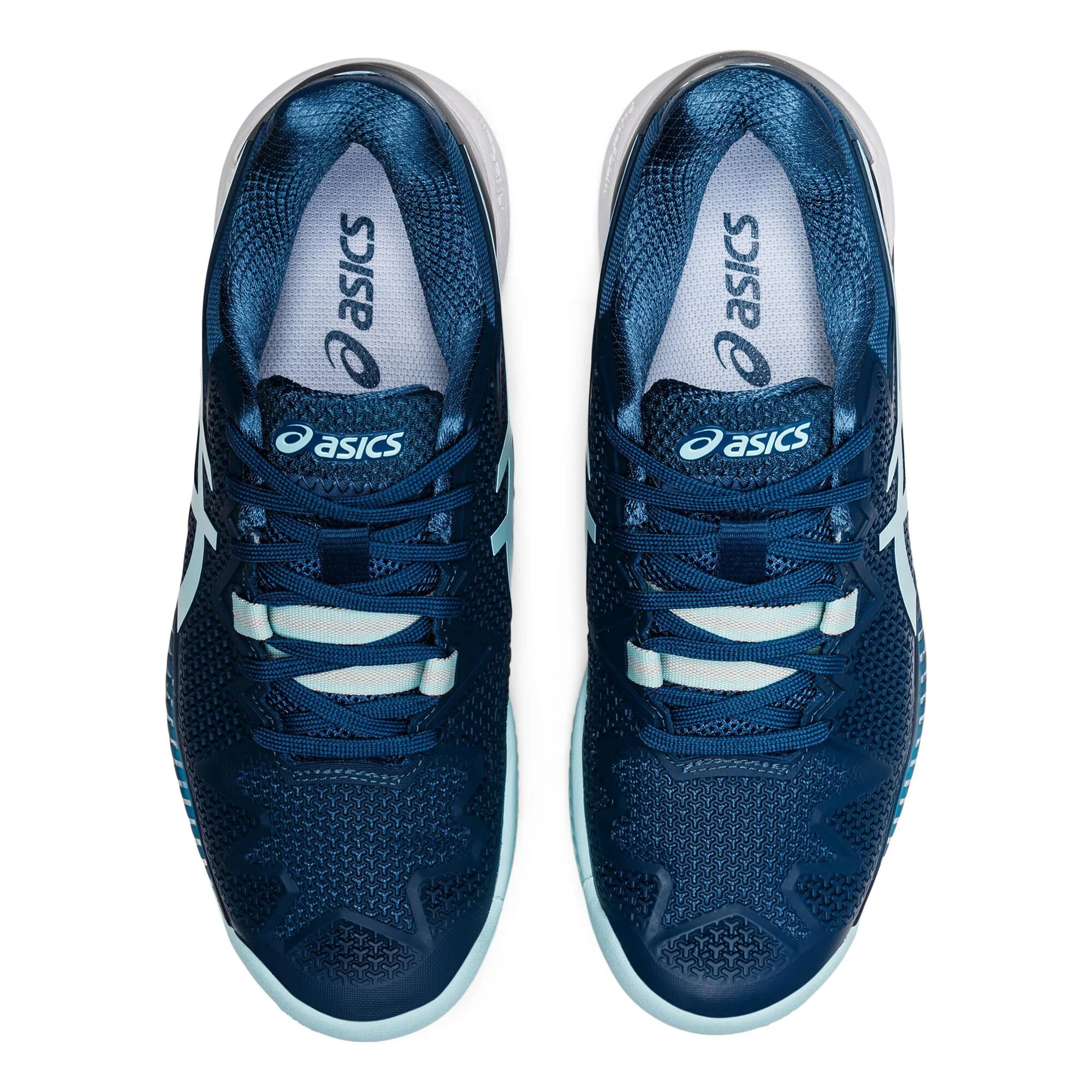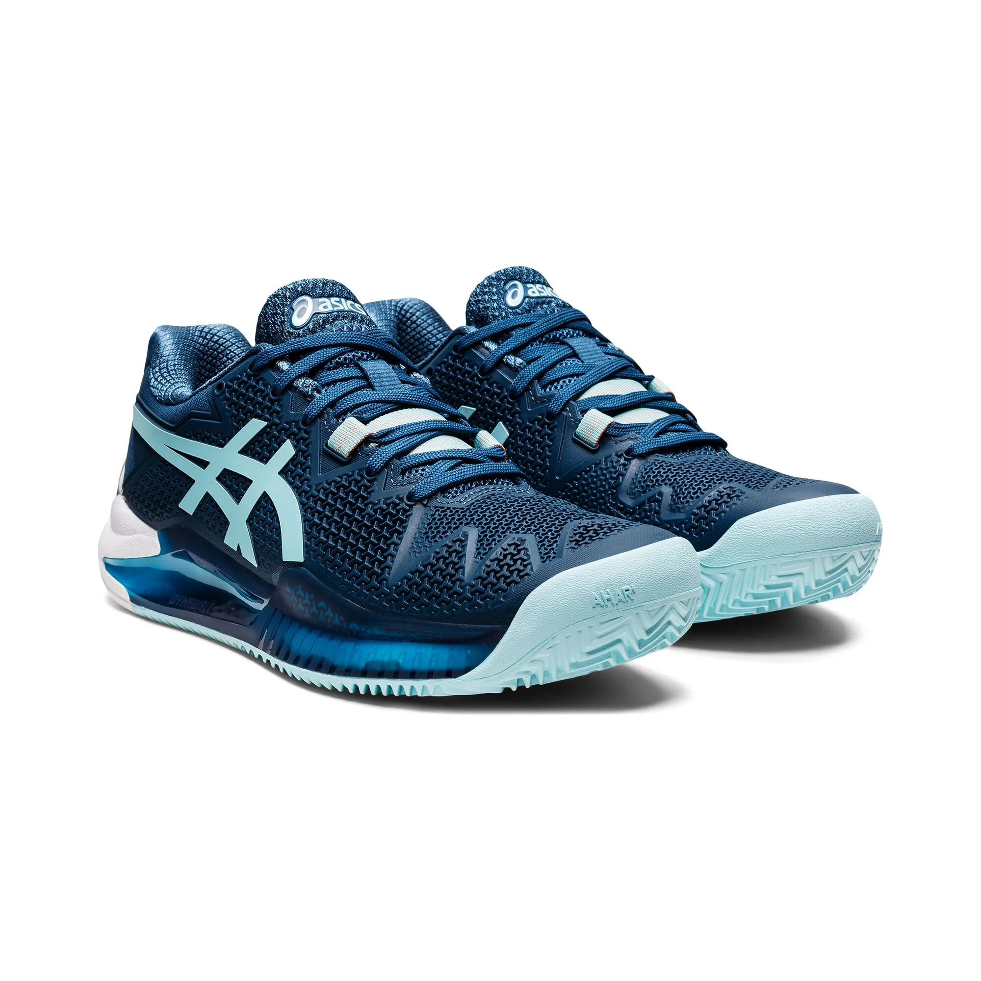 La scarpa da tennis GEL-RESOLUTIONâ„¢ 8 CLAY promuove una corsa reattiva con una sensazione di vicinanza al campo.