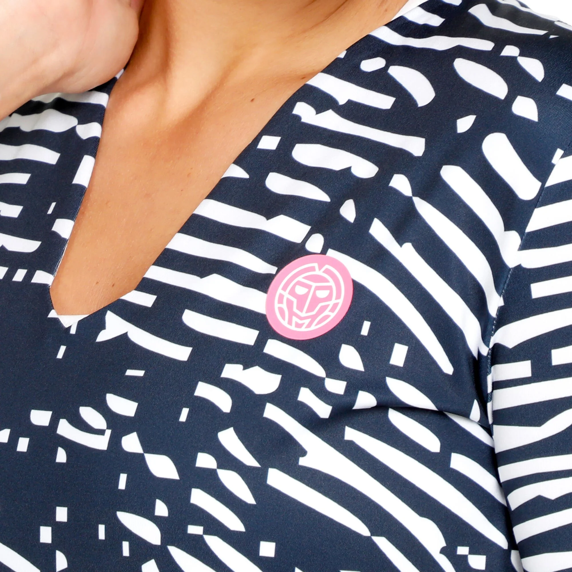 BIDI BADU Fingerprint Printed Manica Lunga Donna – Blu Scuro, Bianco